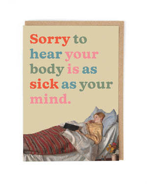 "Sorry to hear your body is as sick as your mind." get well soon card