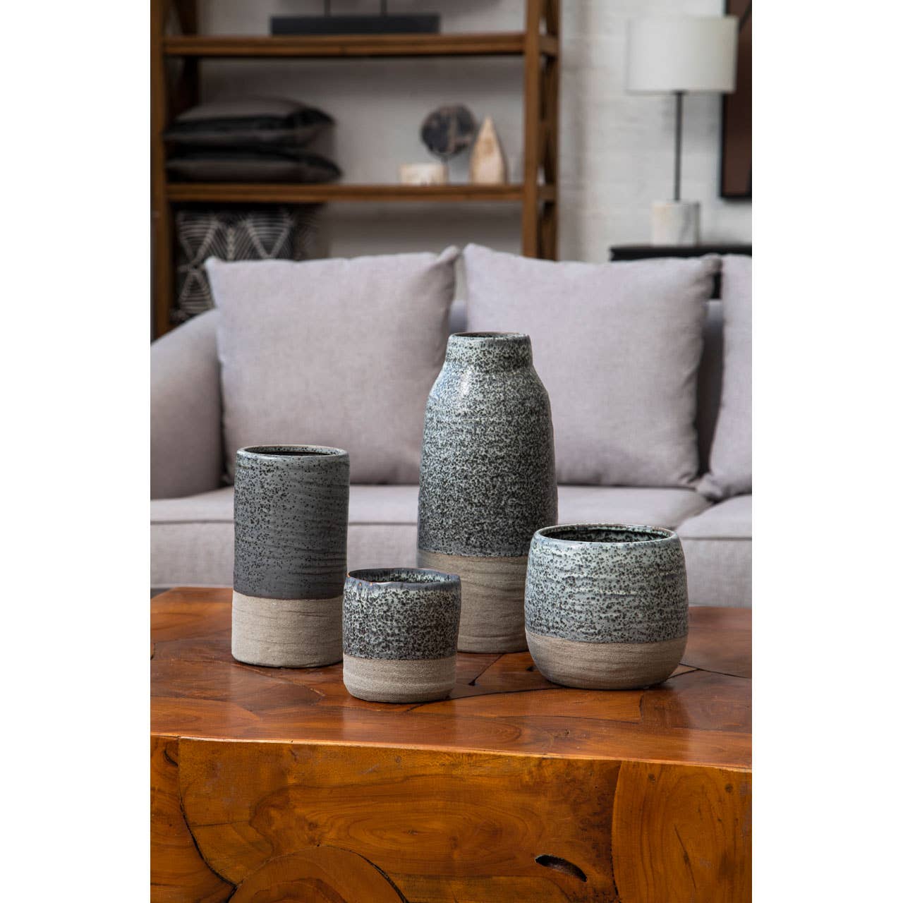Crafted from stoneware, the Caldera planter features a double tone design, with a natural coloured base contrasted with the grey above. The speckled design adds inconsistent pattern to this accent piece. (Product Dimensions: 17cm x 15cm x 17cm x 1kg)
