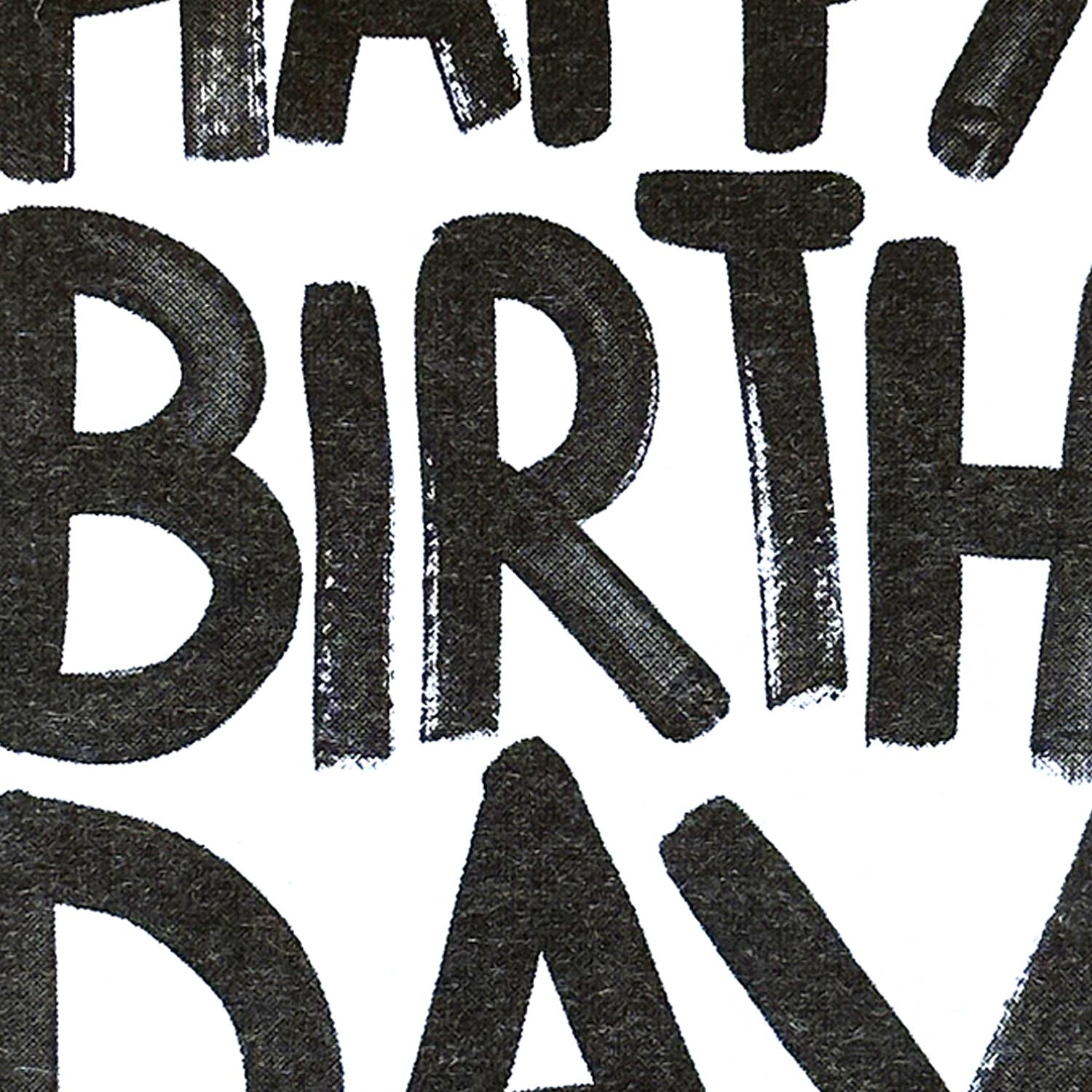 Happy Birthday Risograph Greeting Card in Black and White with bold hand painted typography.