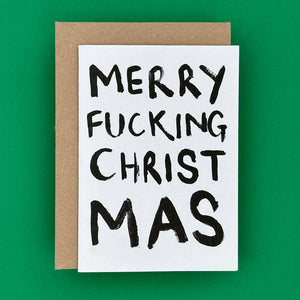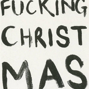 Merry F*** Christmas, Funny Swearing Christmas Card, in Black and White with hand painted typography design, Risograph printed.
