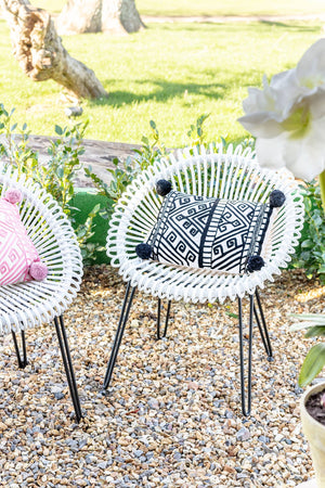 The Jaipur range is made of a lovely soft cream cotton, (polyester filling), with a concealed zip. Chunky black pompoms on each corner.