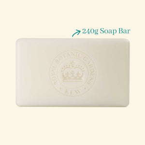 The Kew Gardens Lavender and Rosemary Soap is one of the exclusive soap bars in the Kew Gardens Collection. A generously sized 240g bar that is long-lasting and enriched with moisturising shea butter and vegetable glycerine to nourish and care for the skin. The paper wraps are printed with beautiful illustrations inspired by the plants, from Kew Garden’s historical archives. The Kew Gardens Lavender and Rosemary Soap is fragranced with top notes of lavender and rosemary and enhanced with the freshness of mint. A base of hay-dried lavender flowers with vanilla, cedar and musk combine to create this classically aromatic scent. Kew Gardens - Luxury Shea Butter Soaps 240g