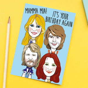 ABBA illustrated by the wonderful Jo aka Wotmalike, this card is perfect for all the Dancing Queens, Mamma Mia fans and 70s euro-pop disco divas in your life...