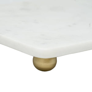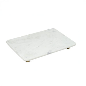 Add a touch of luxury to your home décor with this exquisite marble tray, expertly crafted from pristine white marble sourced and made in India. The tray is elevated by decorative gold feet, which not only enhance its beauty but also keep it raised from your work surface.