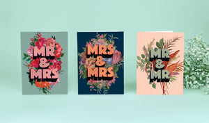 Mr & Mrs greeting card from our bestselling range. The Max Made Me Do It range features gorgeous floral motifs, metallic details and striking colour combinations.