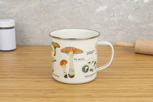 Mushrooms of all shapes and sizes adorn this classically illustrated enamel mug. Any foragers best friend. Not suitable for microwave or dishwasher use Made in China. Our mugs are an innovative product by Gift Republic.