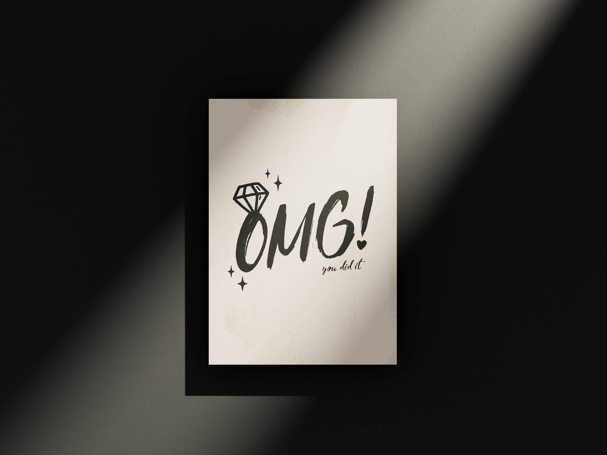 Greeting Card Title: 'OMG Engagement' Size: A6 148 x 105mm (fits a standard UK letter size).