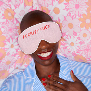 Say it like it really is..... Choose from the following sayings FUCKITY FUCK F**K OFF HIDING FROM THE SHIT SHOW SHIT SHIELD I DREAMT MY HOUSE WAS TIDY FUCK OFF HIBERNATING Choose your saying & choose your colourway - simple. A gorgeous eye mask designed by Catherine Colebrook. Made from beautiful soft linen. Delighted to launch this pink to our linen collection, such a cool colour & looks amazing with red - am OBSESSED! Made with comfort in mind, this softly padded gorgeous eye mask has a sleep-inducing lavender scent, or can be purchased scent free - choose your favourite before checking out. The masks have a comfortable stretchy velvet strap, which adjusts to your head, whilst soft navy velvet sits next to your eyes, perfect for blocking out light.