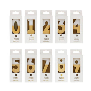 Whatever the age or occasion, celebrate in style with this White and Gold Number 0-9 Birthday Candle Starter Set by Talking Tables. These gold dipped number candles are the perfect cake decoration for a birthday or wedding anniversary. Use on their own or mix and match with other numbers to get your desired age.
