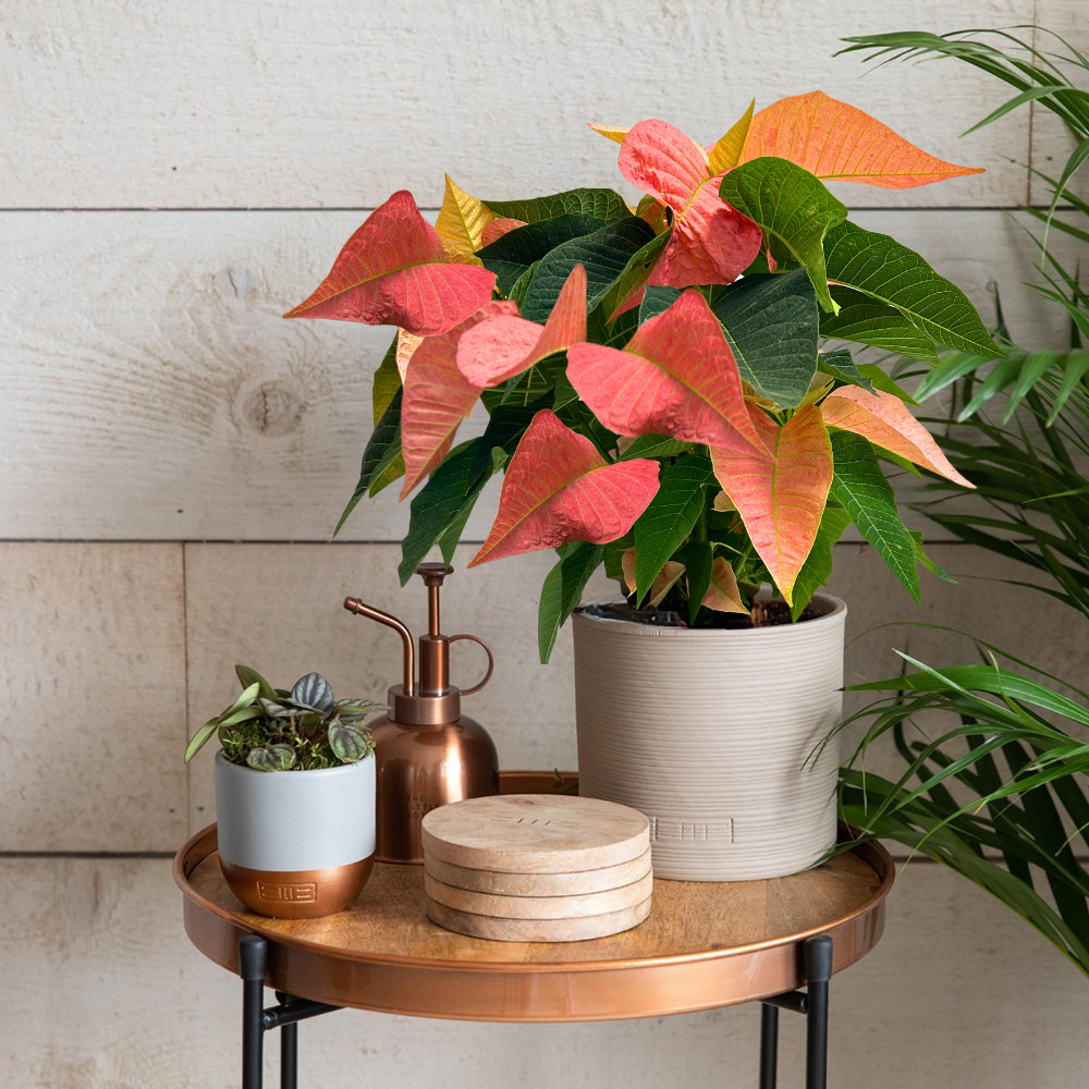 Living British Grown Pink Poinsettia in Almond stoneware pot