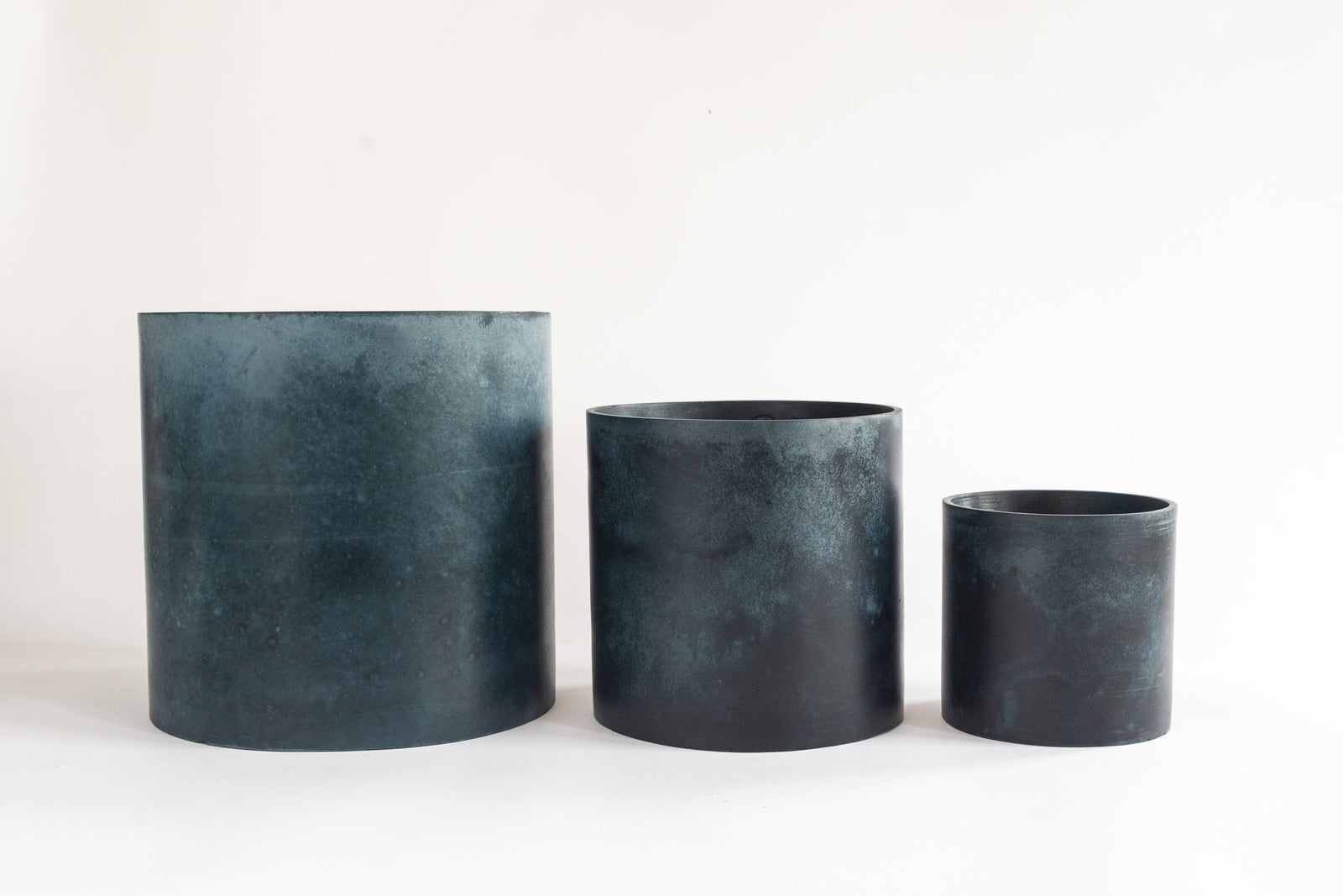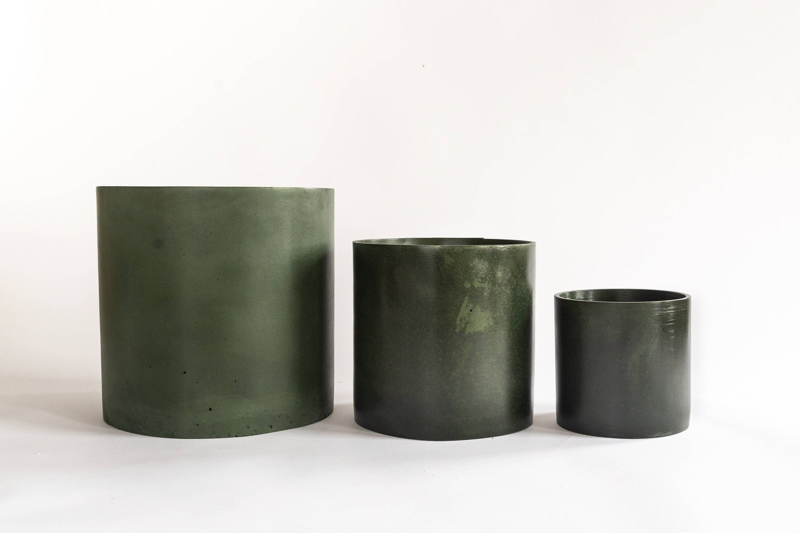 Hand-cast indoor plant pot | Muddy Green & Off-White: Medium