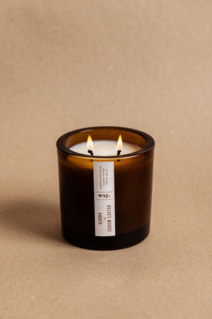 12.3oz of 100% plant-based wax in thick-walled amber glass. glass easy to reuse after the candle has finished. A wxy. bestseller. Made in the UK. Charity donation. * Please note we have now changed the wicks in our amber range from wood to cotton, based on feedback from our retailers, to improve burn quality and fragrance throw. If you have any enquires surrounding this change please get in touch.