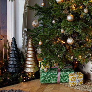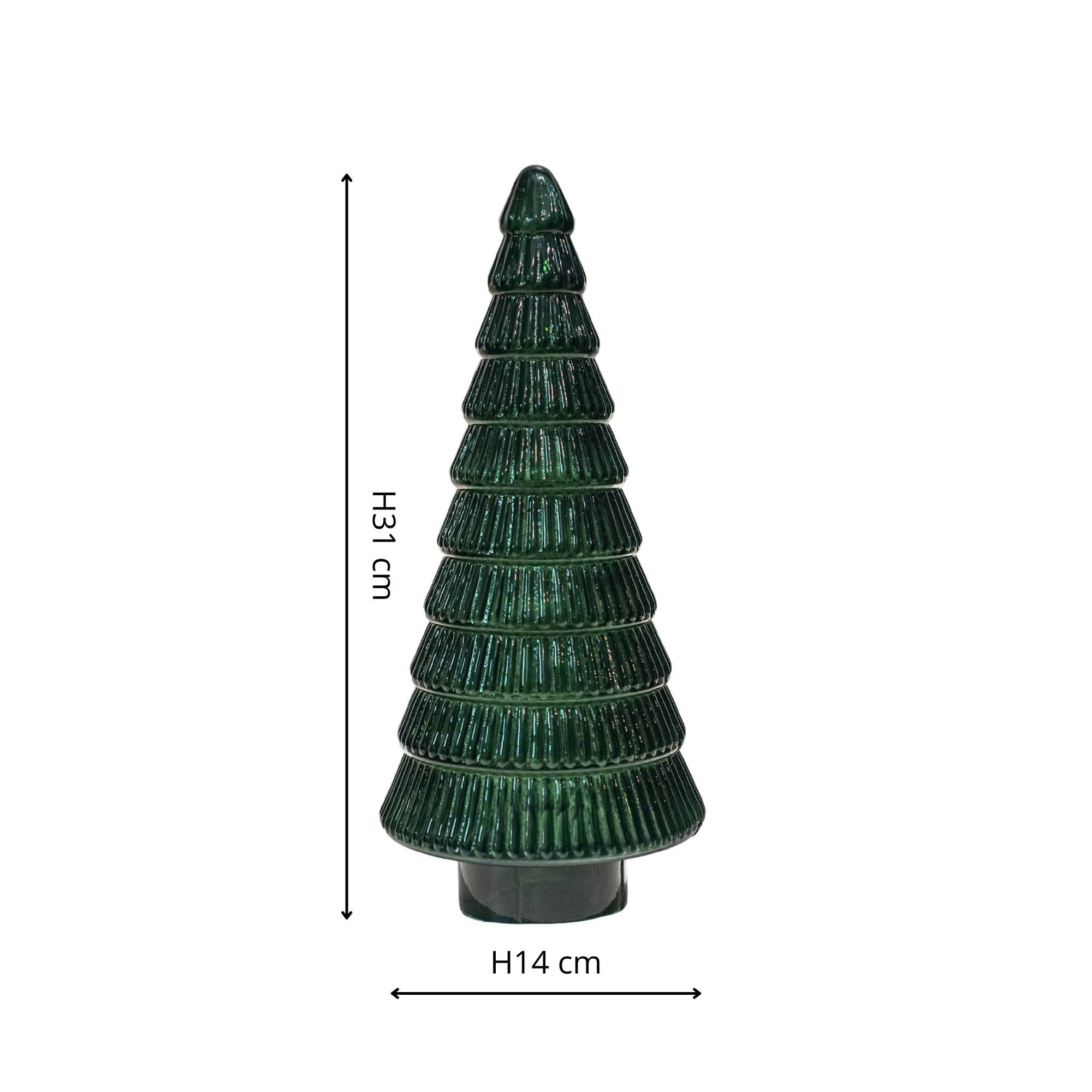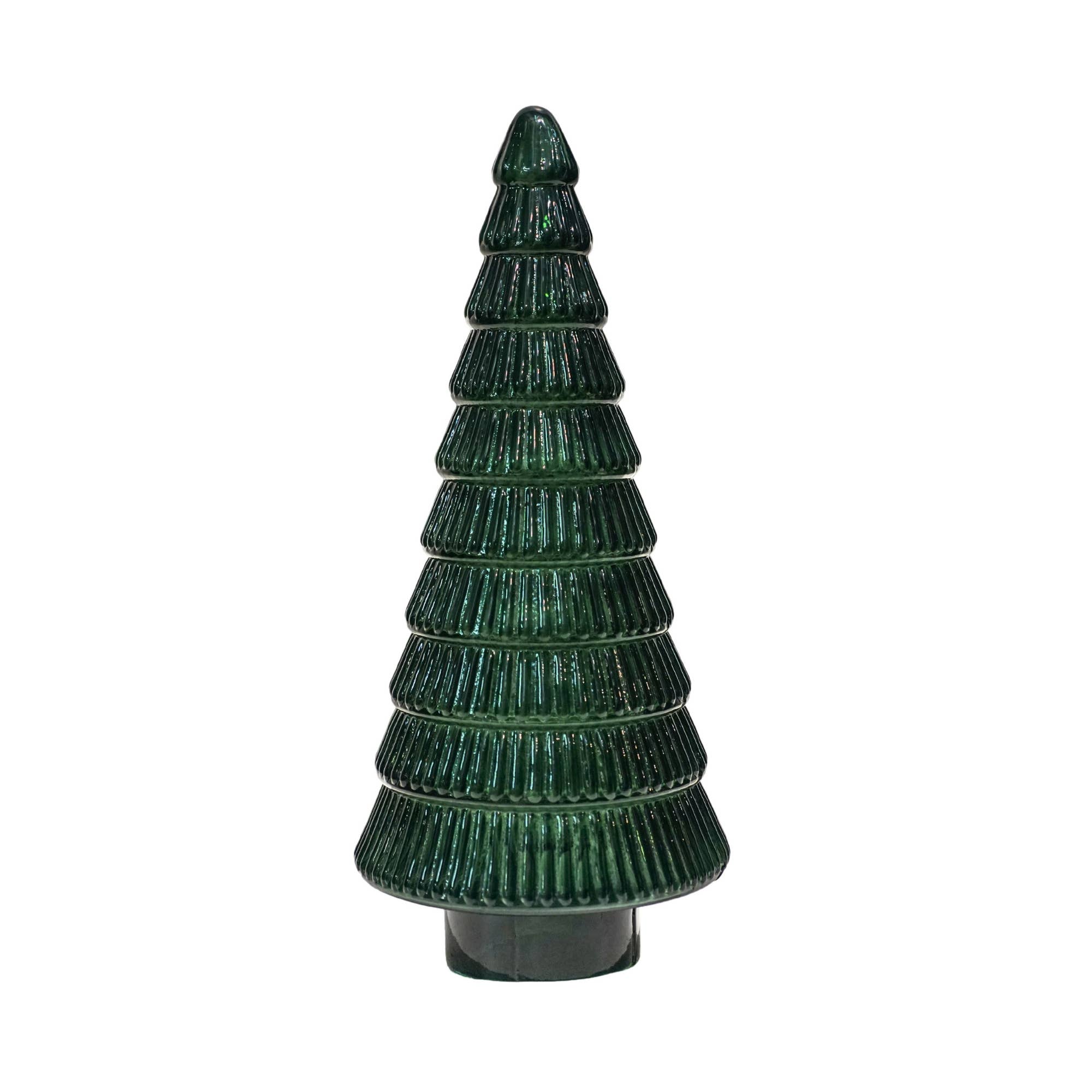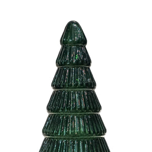 Embodying the frost on the trees on a crisp and clear winter's night, these festive tree-shaped decorations will look elegant and regal in any room décor. The ribbed design work makes this tree unique and is available in a silver, blue, gold and evergreen glass finish that is perfect for tables, consoles, buffet tables or mantels.